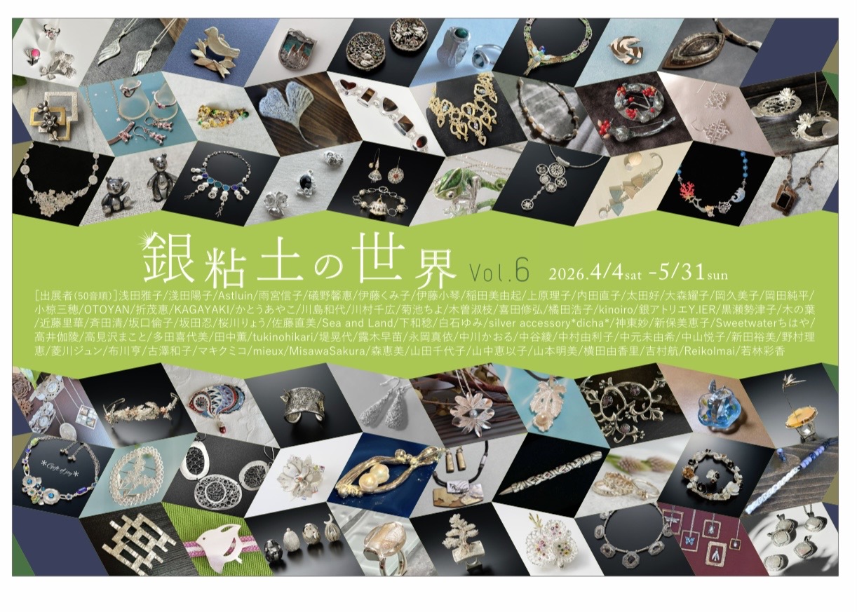 2年に一度の開催を重ね、2018年には15名、2020年は22名、2022年は40名、2024年は60名と参加者は年々増え、今回は71名を迎えるまでになりました。本展では、多彩な表現と個性あふれる銀粘土作品をご覧いただけます。